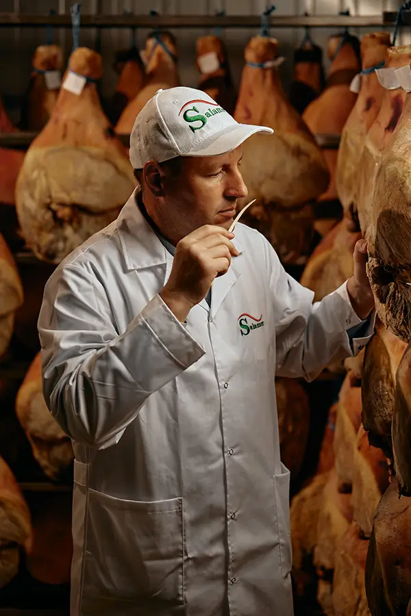 Jambon Salamer, un prosciutto autohton, unic în Moldova, cu textură fragedă gust cremos, ușor fructat, perfect echilibrat.